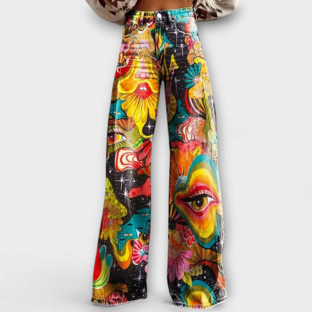 Calça de verão de cintura alta com estampa artística – estilo europeu