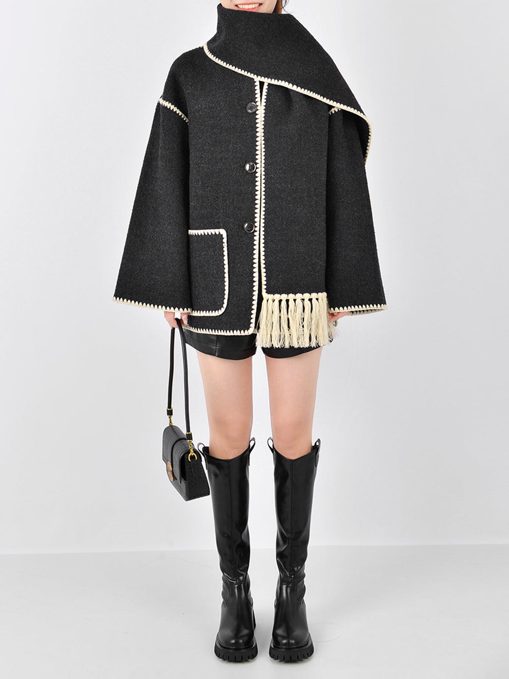 Casaco de Lã com Gola de Lenço