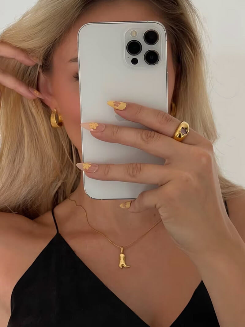Descubra nosso Colar de Bota de Cowboy, apresentando um pendente detalhado de bota de cowboy. Disponível em aço inoxidável banhado a ouro 14K ou em aço inoxidável premium, esta peça única adiciona uma declaração ousada a qualquer traje.