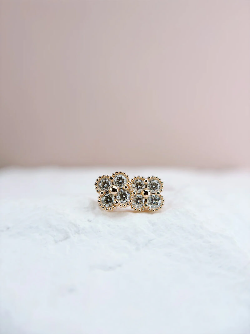 Realce seu visual com os Brincos Sparkling Lyne Flower, projetados com intrincados motivos florais e detalhes deslumbrantes. Finalizados em banhado a ouro 14K, estes brincos exalam um charme radiante e luxuoso, tornando-se o acessório perfeito para elevar qualquer look.