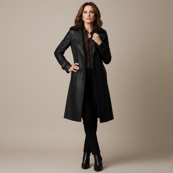 Casaco longo em couro Emma – Elegância e Sofisticação Atemporal