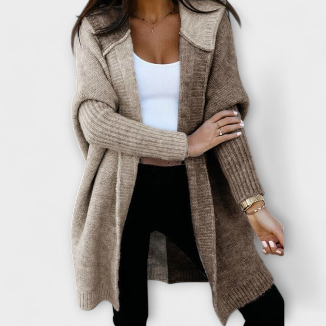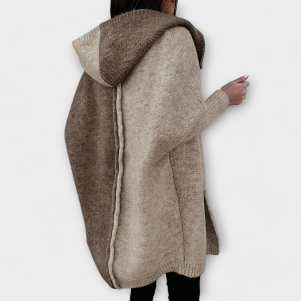 Cardigan de Malha em Patchwork com Capô